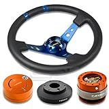 NRG-SRK-175H+200OR+101OR+016RBL, NRG Innovations 13.78" 350mm 3" Deep Dish Style Black Leather Blue Center Marking Blue Spokes Racing Steering Wheel Combo with 6 Hole Short Hub Adapter with Gen 2.0 Orange Quick Release with Orange Lock Hub Kit SRK-175H