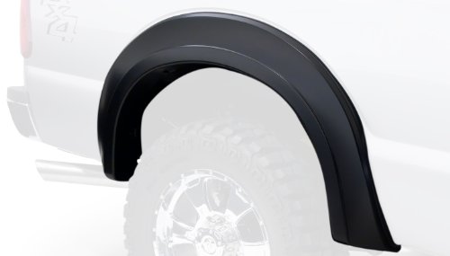 Ford Extend-A-Fender Flare Rear Pair?You’ve equipped your Ford Super Duty with oversize wheels and tires for serious off-road traction and style. Now you need extra tire coverage to protect your rig’s body and maybe even comply with local laws. Bushwacker Extend-A-Fender(R) Flares deliver premium-grade protection and style matched to oversized tires. Yet, as tough as they are, they go on easily with no drilling required. You can install them in minutes and enjoy them for years – our exclusive Dura-Flex(R) 2000 material is designed for added durability and flexibility, with built-in UV protection. Your Extend-A-Fender(R) Flares resist chalking, cracking, and warping, whether you leave them with their OEM-style matte black finish or paint them for a totally personalized look. Either way, your Ford will look factory-equipped for your big off-road tires. Extend-A-Fender(R) Flares go on easy, perform tough, and look great.